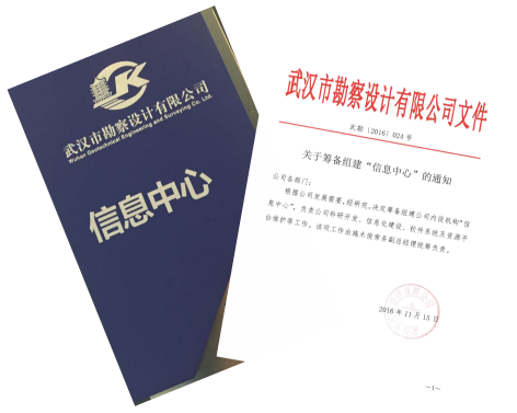 2017年1月1日,武漢市勘察設計有限公司正式下文成立信息中心,主要負責公司科研開發、信息化建設、軟件系統及資源平臺維護等工作。