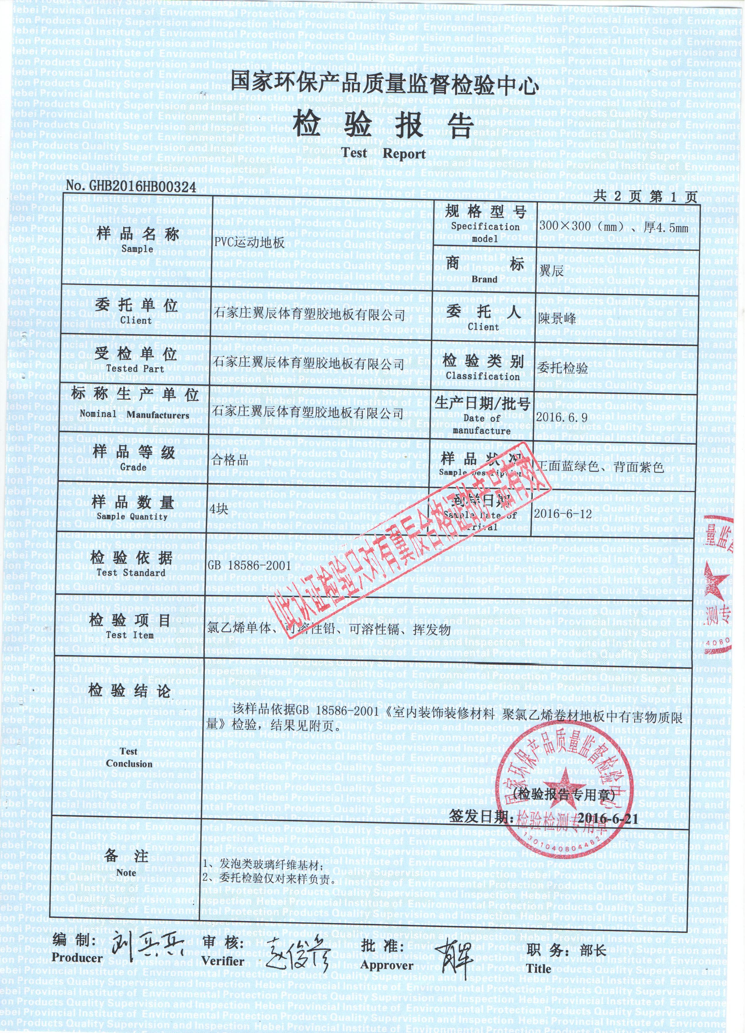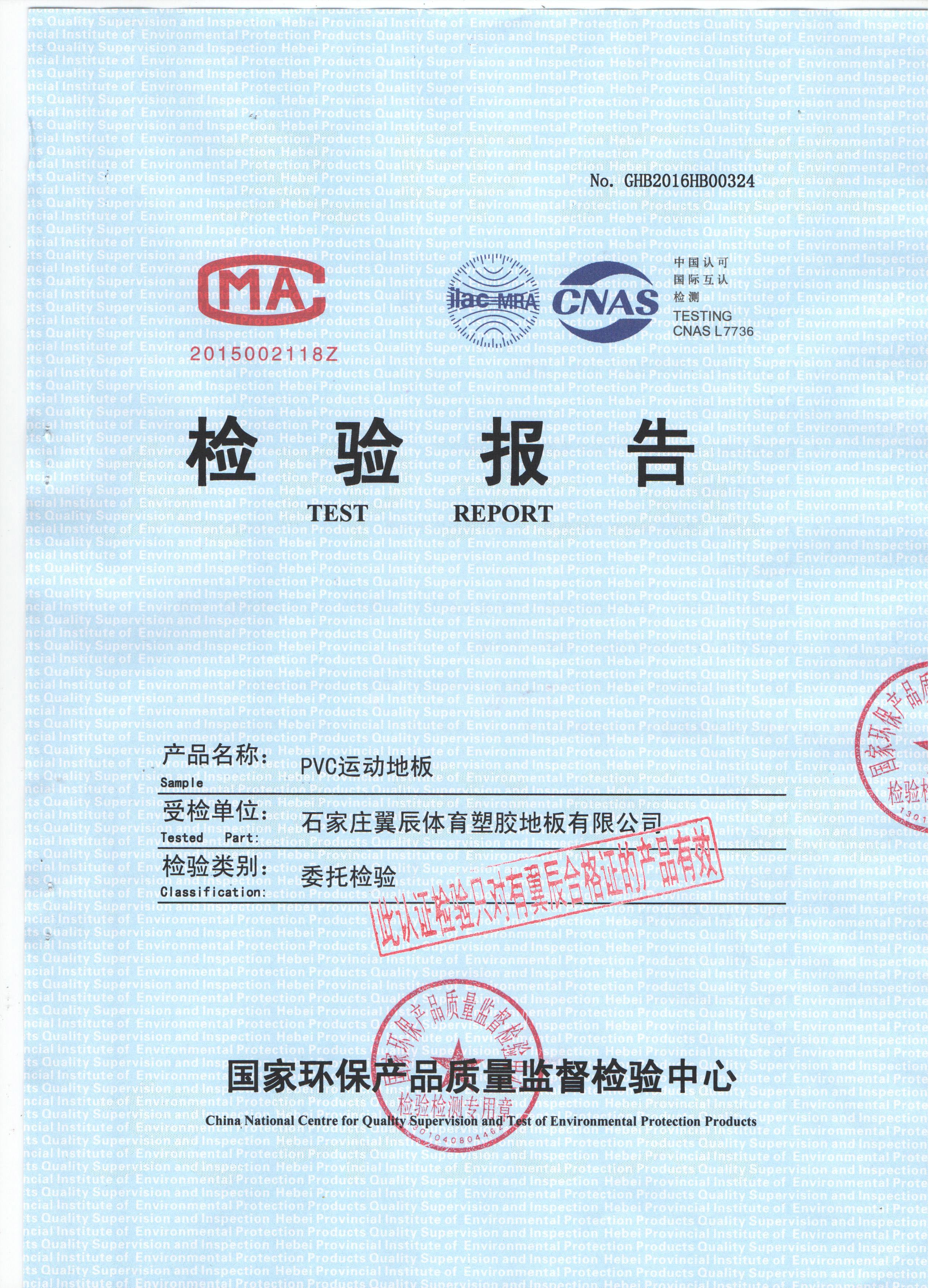 如沒特殊注明,文章轉載請注明來自“翼辰地板”PVC運動地板-國家環保產品質檢報告